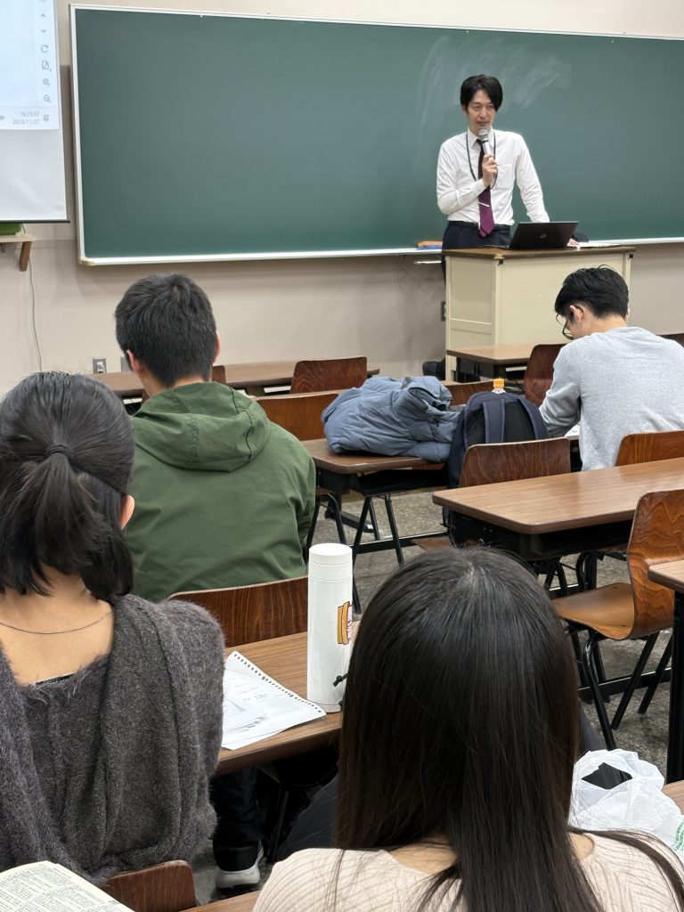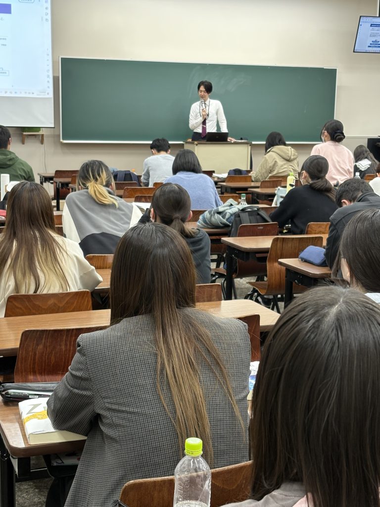 11月27日労働関係法・労働法の講義で、東京労働局の労働基準監督官で特別監督官の齊藤さんに労働基準監督官の業務のお話をいただき、 労働基準監督行政の実際をご講義いただきました。労働基準監督官の魅力も学生にお伝えいただきました。